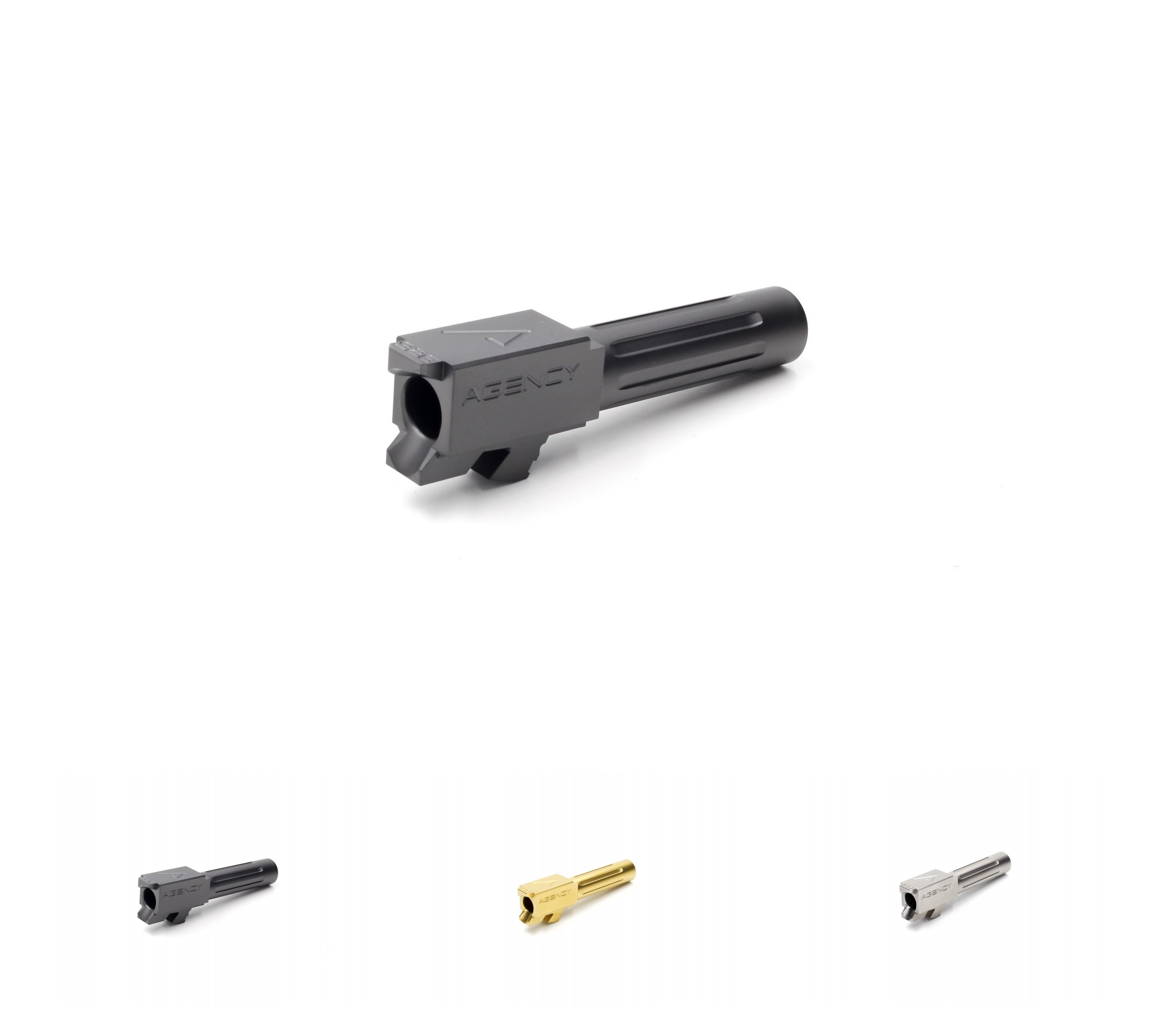 These slides will come stripped of all parts but include the aos cut with iron sight plate pre installed. Syndicate by agency match grade drop in barrel compatible with glock 19 gen 1 4 syndicate by agency barrels are for those who prefer a purely functionally minded design. Slide serration count will change due to length of the slide. It features aggressive straight top serrations and optional side windows l r.
